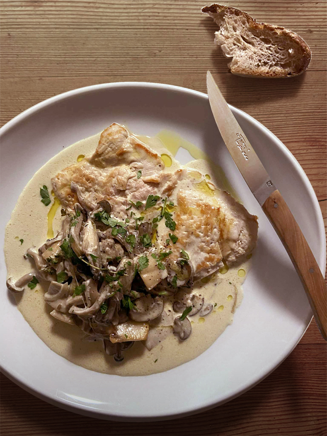 ●鶏のパイヤール いろいろなきのこのソースとヌイユと一緒に